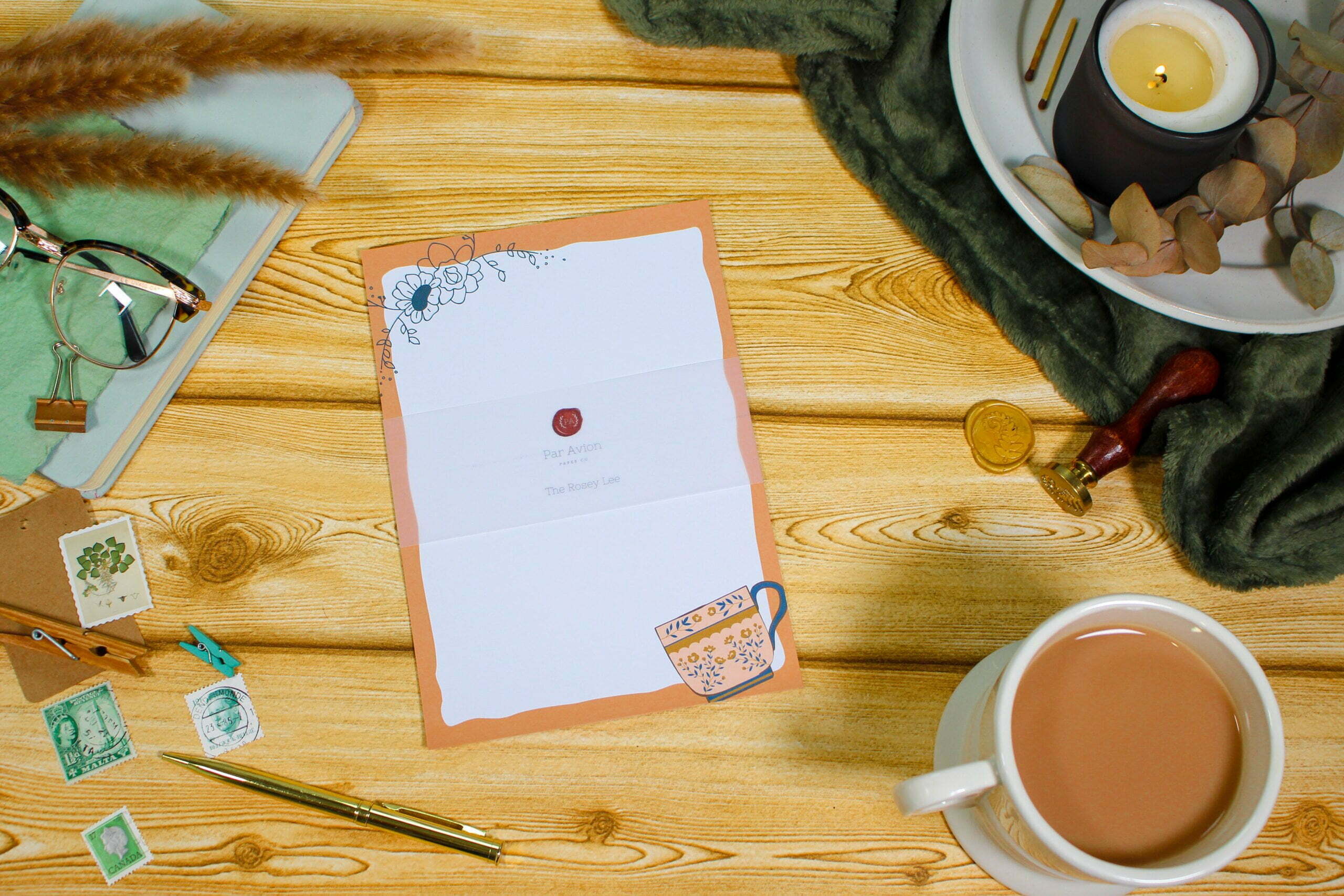 Poised with a cup of tea, let your writing pour out onto the page with The Rosey Lee. A must have for any snail mail writing and stationary! Who said writing paper had to be dull anyway?